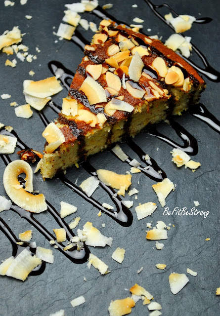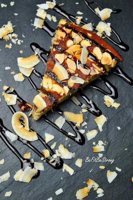 Dzisiaj coś słodkiego dla miłośników słodyczy bez dodatku mąki. Wyśmienite, delikatne, wilgotne i rozpływające się w ustach ciasto, przepełnione aromatem cytryny, kokosa i migdałów. Połączenie smaków wprost idealne, że nie poprzestaniecie na jednym kawałku! Wychodzi ok. 12-14 kawałków. 100g = 308kcal, jeden kawałek ok. 52g = ok. 160 kcal.
