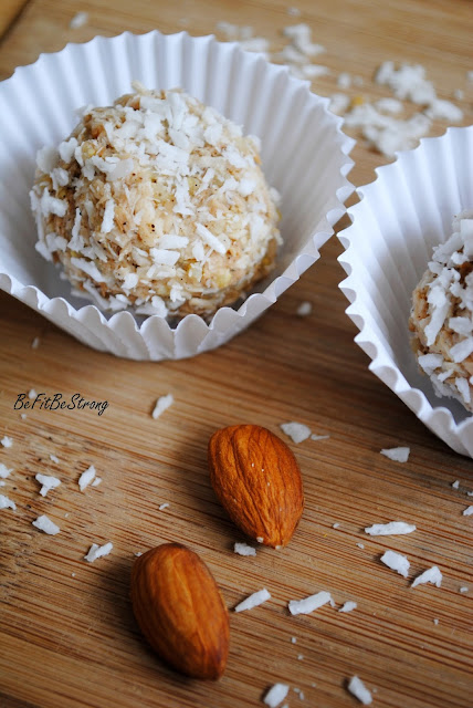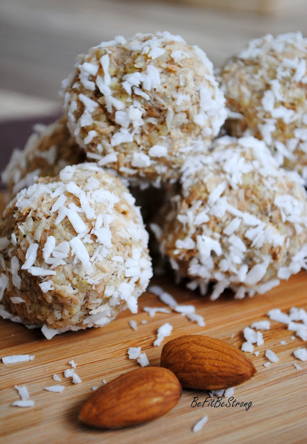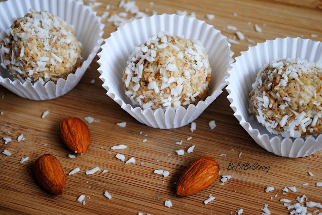 A dziś przepis na dietetyczne, jaglane à la Raffaello, które ostatnio przyrządziłam dla mojego taty. Uwielbia on tego rodzaju słodycze, więc stwierdziłam, że nieco odchudzę jego smakołyki, by grzech ich spożywania był nieco mniejszy. Są mniej słodkie, ale w smaku całkiem przypominają popularne kokosowe kuleczki. Ponadto są banalne w wykonaniu, więc każdy może pobawić się w ich przygotowanie! Kaloryczność jednej kuleczki (przy 20 sztukach) jest prawie 3 razy niższa niż sklepowej wersji! Jedna to ok. 27g=70kcal.