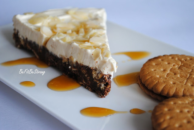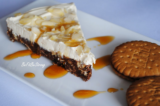 Wszystkie składniki ubijamy na sztywny krem i wylewamy na schłodzony spód. Dekorujemy świeżymi owocami, płatkami migdałów lub kruszoną czekoladą. Wkładamy do lodówki na co najmniej godzinę. U mnie dodatkowo oblane syropem klonowym, który po prostu ładnie się prezentuje.