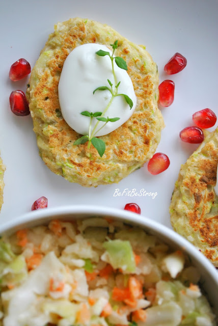 A dzisiaj, w sumie nic nadzwyczajnego, gdyż placki z cukinii. Lecz tym razem są one tymiankowe. Uwielbiam tymianek i mogłabym dodawać go do większości moich potraw, ale nie można popadać w rutynę i nudę! Dodatkowo placuszki mają towarzystwo w postaci surówki z kalarepki. Przepis na ok. 10 placuszków, jeden to ok. 54kcal.